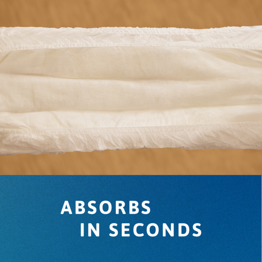 Ο απορροφητικός πυρήνας επόμενης γενιάς με κανάλια ροής απορροφά και κλειδώνει με ασφάλεια την υγρασία σε δευτερόλεπτα.